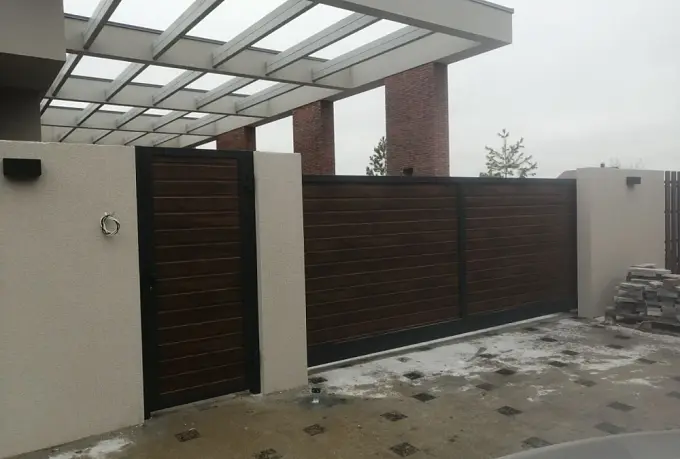 Заказал у Роллас откатные ворота , калитку и секцию ограждения. Очень красиво ! Комбинированный профиль .Мы очень довольны .